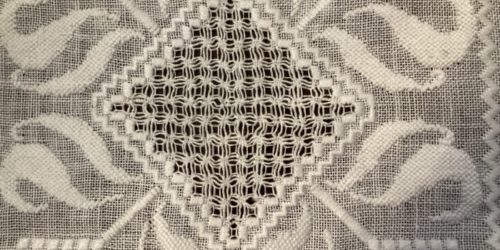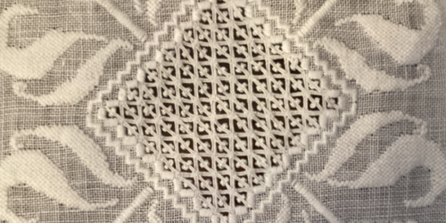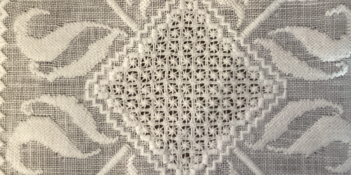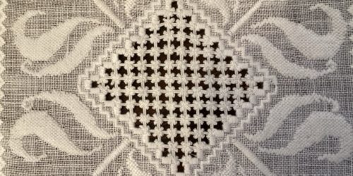 No,1 ハーダンガー刺繍は、ノルウェーの伝統的な白糸刺繍で幾何学模様と透かし模様の対比から作り出される刺繍です。