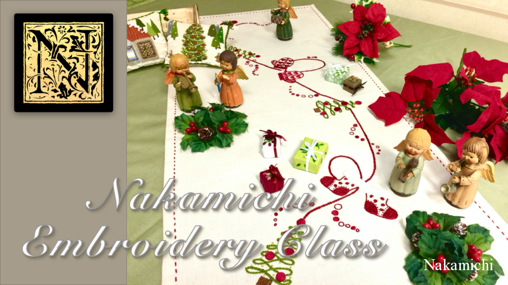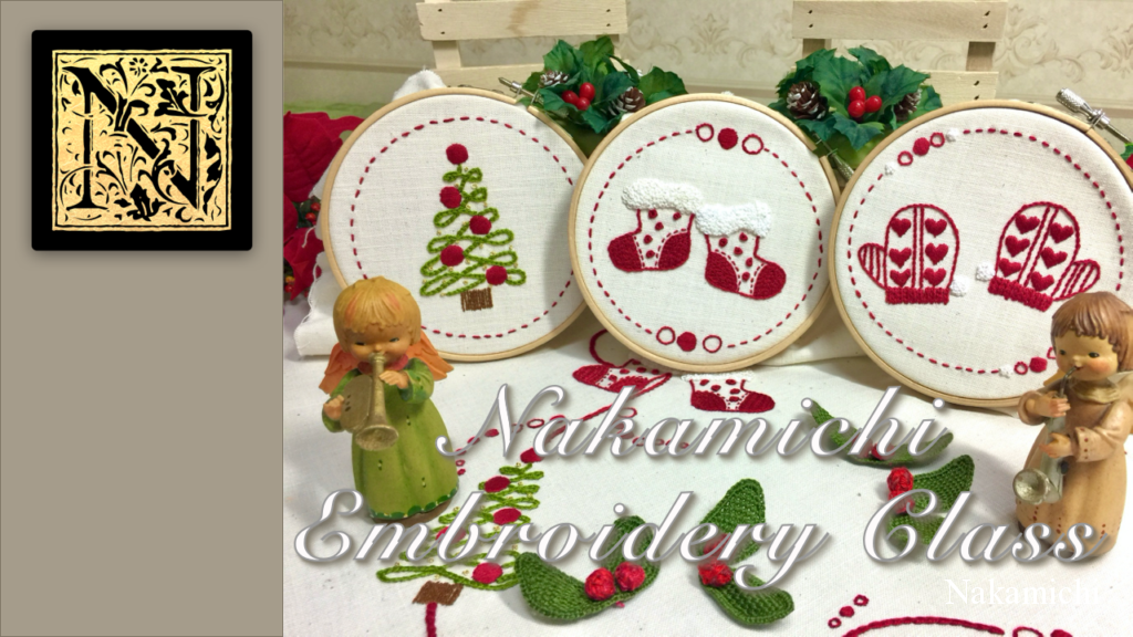初心者のための簡単なステッチの組み合わせと、新たにサテンステッチを学びながらクリスマスの作品を作っていきます。